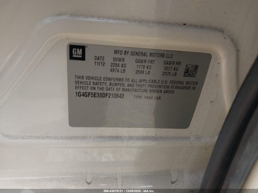 2013 BUICK LACROSSE 2013 року Бензин, 3.6, Передній привід, vin - 1G4GF5E30DF210643 з США
