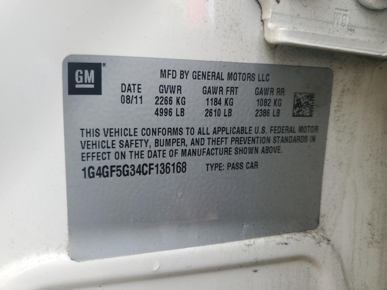 2012 BUICK LACROSSE 2012 року Бензин, 3.6, , vin - 1G4GF5G34CF136168 з США