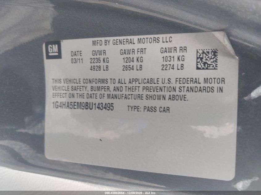2011 BUICK LUCERNE 2011 року Бензин, 3.9, Передній привід, vin - 1G4HA5EM9BU143495 з США