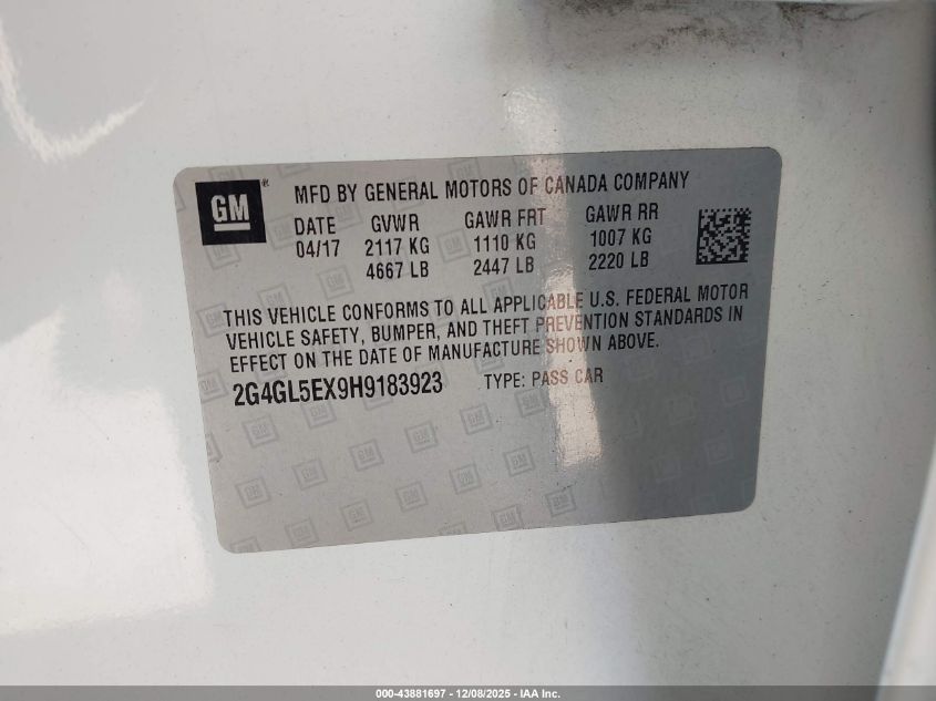 2017 BUICK REGAL 2017 року Бензин, 2.0, Передній привід, vin - 2G4GL5EX9H9183923 з США