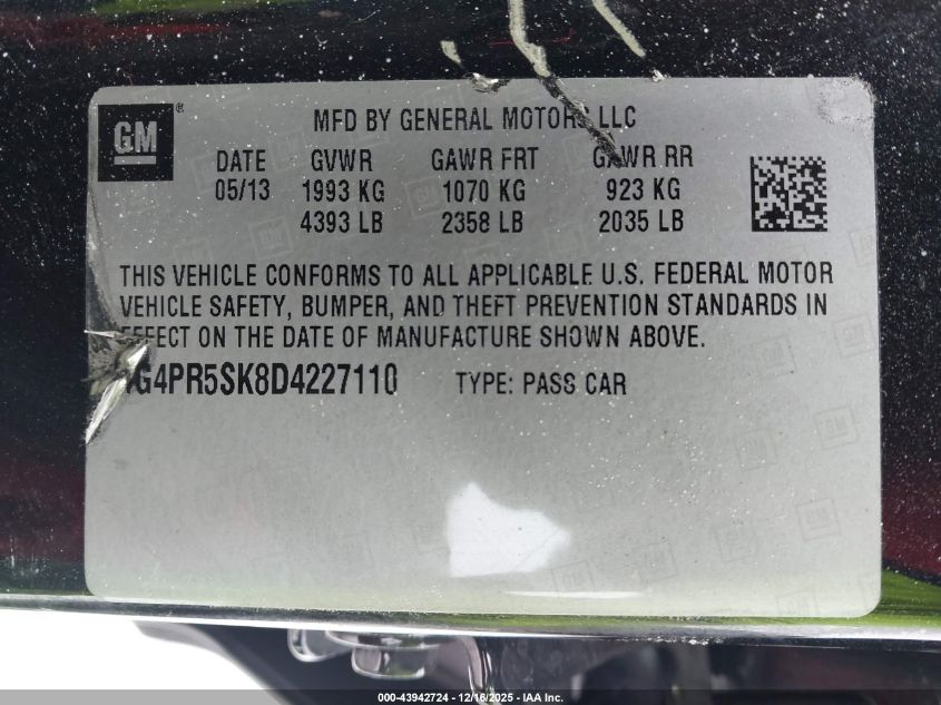 2013 BUICK VERANO 2013 року Бензин, 2.4, Передній привід, vin - 1G4PR5SK8D4227110 з США