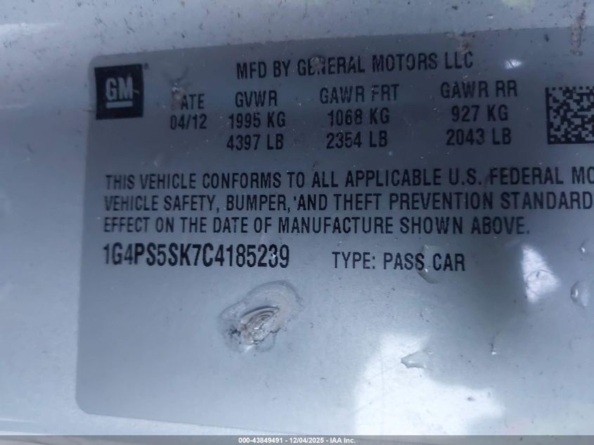 2012 BUICK VERANO 2012 року Бензин, 2.4, Передній привід, vin - 1G4PS5SK7C4185239 з США