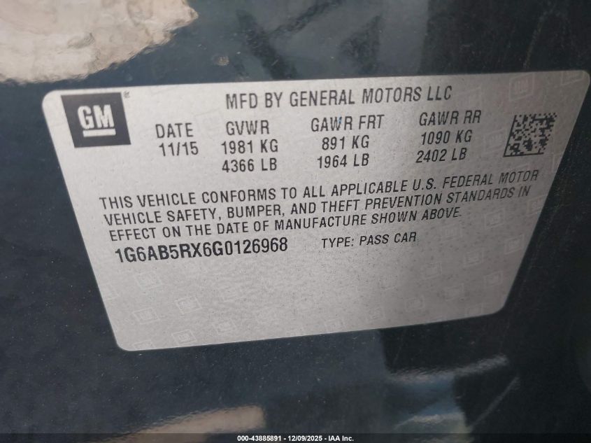 2016 CADILLAC ATS 2016 року Бензин, 2.0, Задній привід, vin - 1G6AB5RX6G0126968 з США