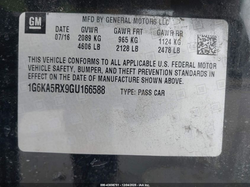 2016 CADILLAC CT6 2016 року Бензин, 2.0, Задній привід, vin - 1G6KA5RX9GU166588 з США