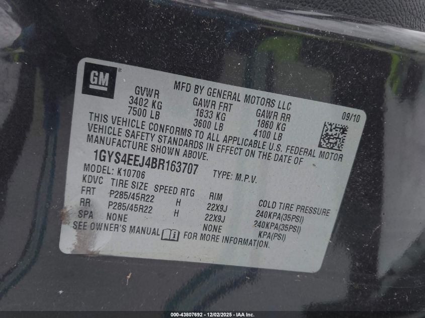 2011 CADILLAC ESCALADE 2011 року Гібрид, 6.0, Повний привід, vin - 1GYS4EEJ4BR163707 з США