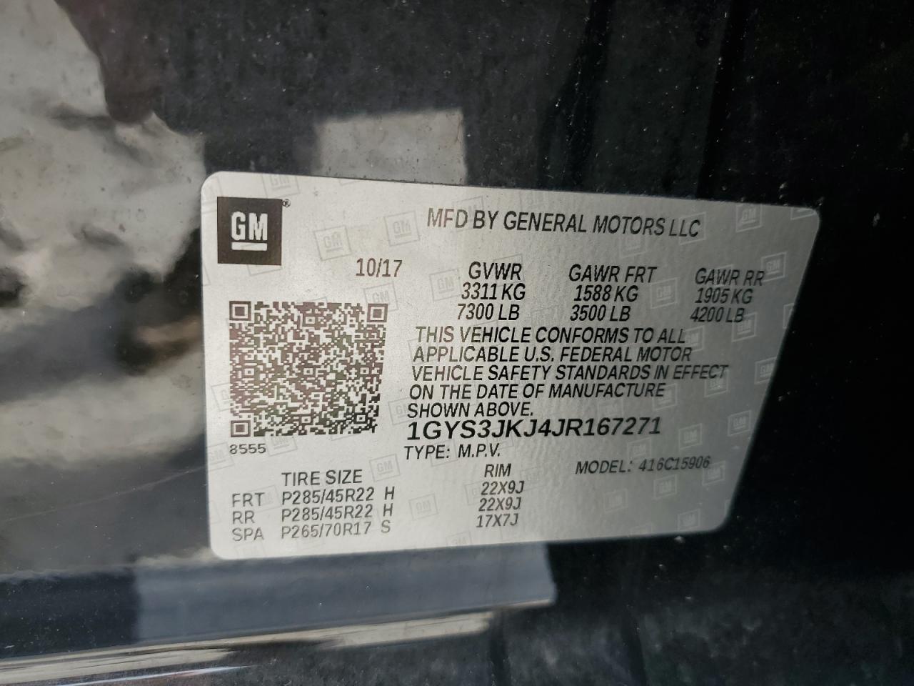 2018 CADILLAC ESCALADE 2018 року Бензин, 6.2, Задній привід, vin - 1GYS3JKJ4JR167271 з США