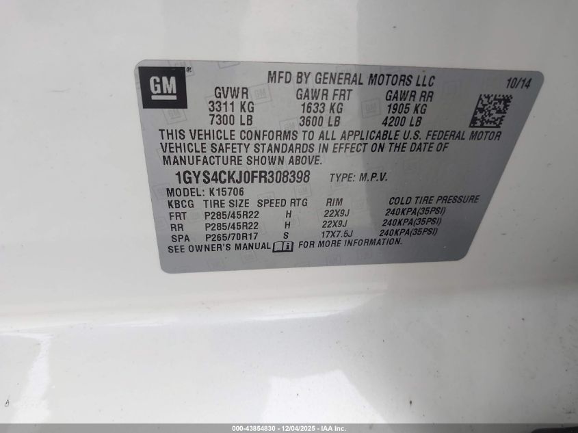 2015 CADILLAC ESCALADE 2015 року Бензин, 6.2, Повний привід, vin - 1GYS4CKJ0FR308398 з США