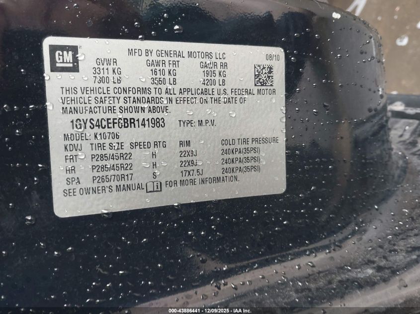 2011 CADILLAC ESCALADE 2011 року Бензин, 6.2, Повний привід, vin - 1GYS4CEF6BR141983 з США