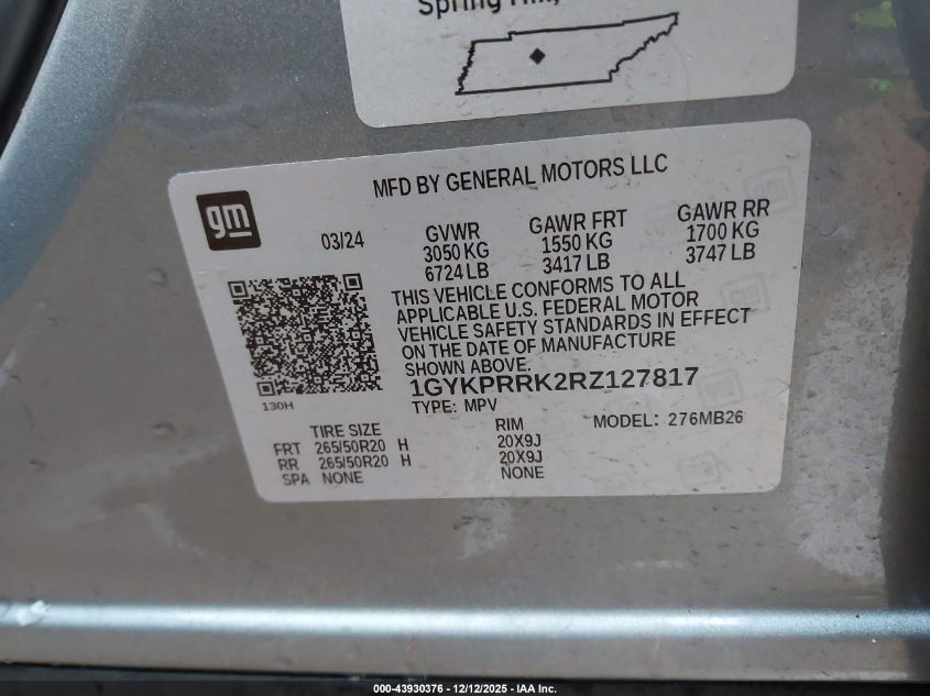 2024 CADILLAC LYRIQ 2024 року Електричний, 0.0, , vin - 1GYKPRRK2RZ127817 з США