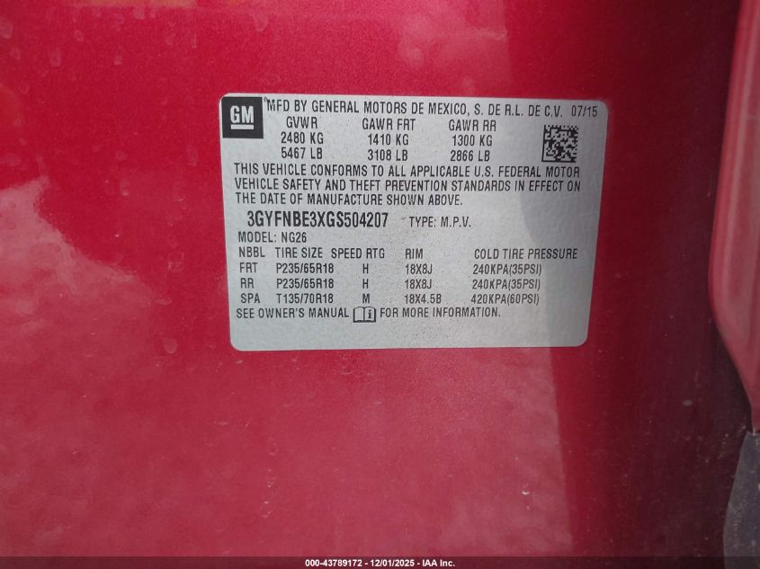 Колір БордовийЦиліндри 6Привід Передній привідVIN 3GYFNBE3XGS504207Стан Заводиться та їде (перевірено)Ушкодження Передня або задня