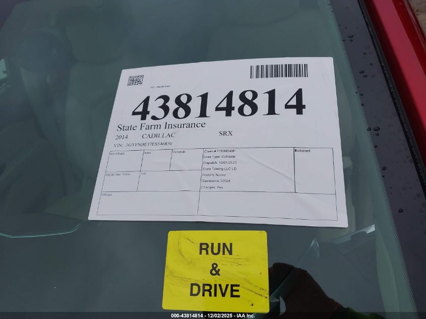 2014 CADILLAC SRX 2014 року Бензин, 3.6, Передній привід, vin - 3GYFNBE37ES546850 з США