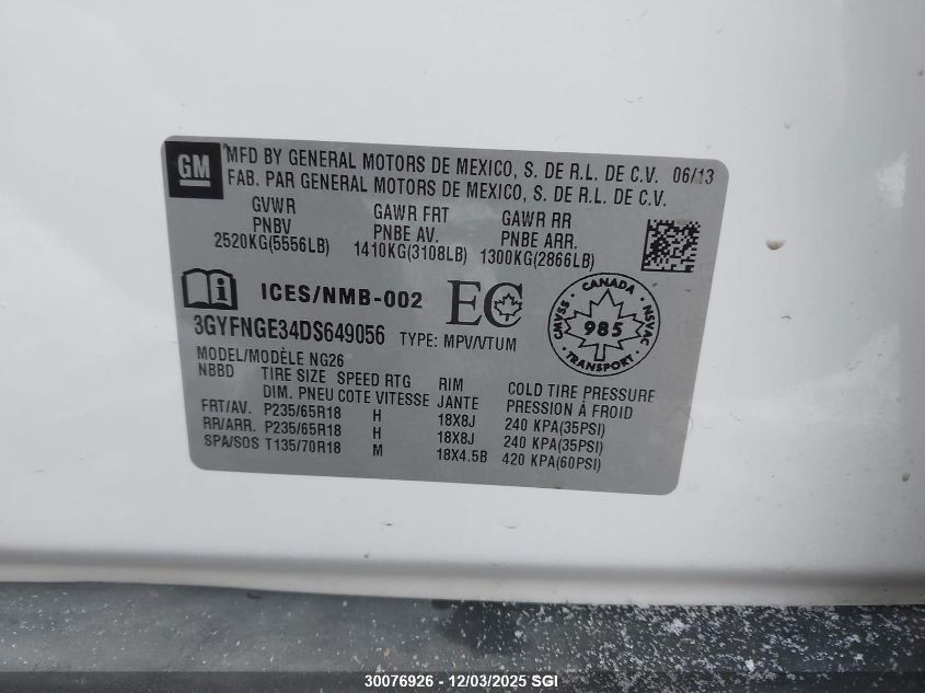 2013 CADILLAC SRX 2013 року Бензин, , Повний привід, vin - 3GYFNGE34DS649056 з США