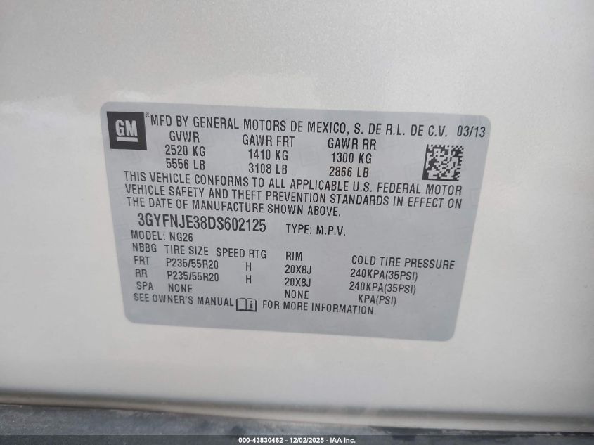 Колір ШампаньЦиліндри 6Привід Повний привідVIN 3GYFNJE38DS602125Стан Заводиться та їде (перевірено)Ушкодження Передня ліва AutoRIA