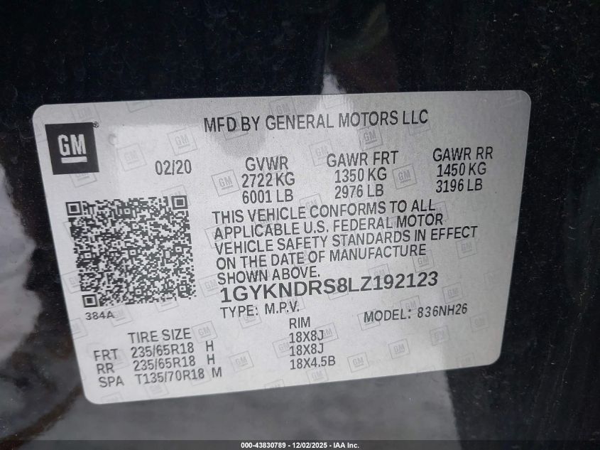 2020 CADILLAC XT5 2020 року Бензин, 3.6, Повний привід, vin - 1GYKNDRS8LZ192123 з США
