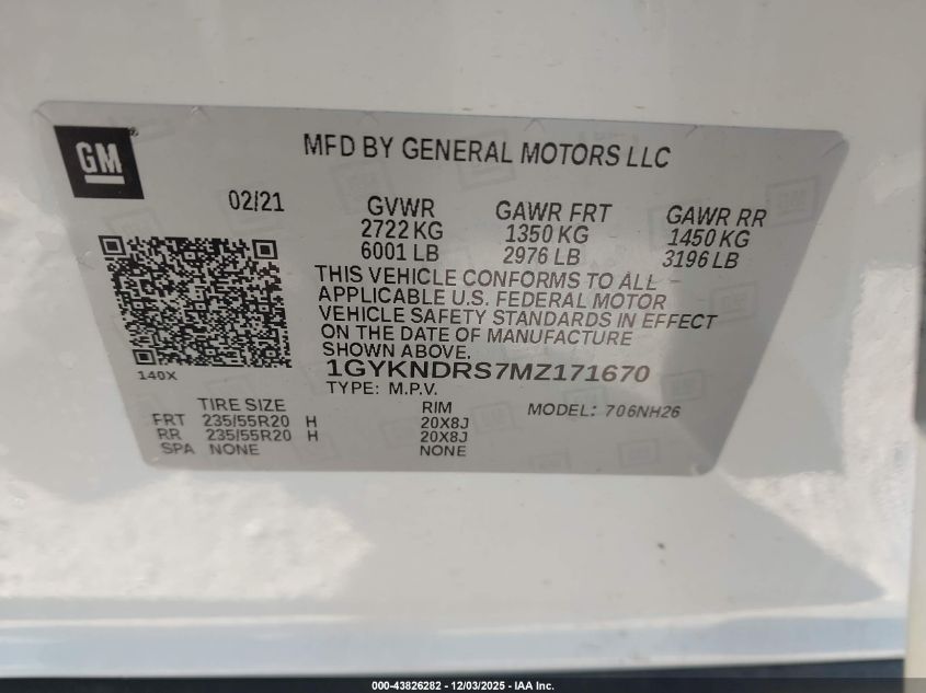 2021 CADILLAC XT5 2021 року Бензин, 3.6, Повний привід, vin - 1GYKNDRS7MZ171670 з США