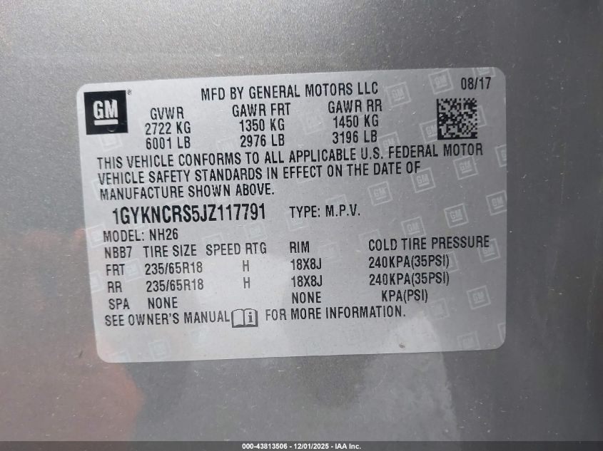 2018 CADILLAC XT5 2018 року Бензин, 3.6, Передній привід, vin - 1GYKNCRS5JZ117791 з США