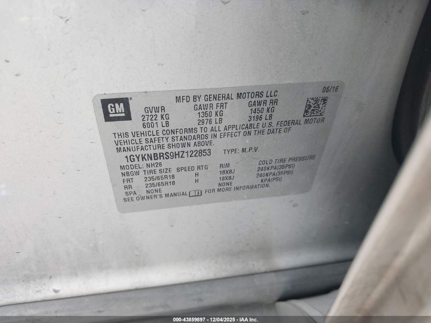 2017 CADILLAC XT5 2017 року Бензин, 3.6, Передній привід, vin - 1GYKNBRS9HZ122853 з США