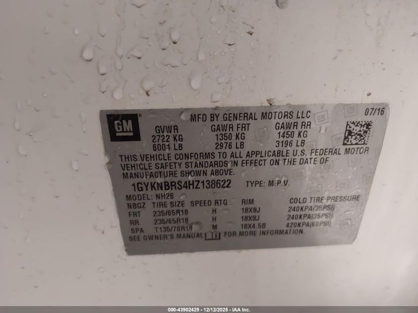 Колір БілийЦиліндри 6Привід Передній привідVIN 1GYKNBRS4HZ138622Стан Заводиться та їде (перевірено)Ушкодження Передня або задня AutoRIA