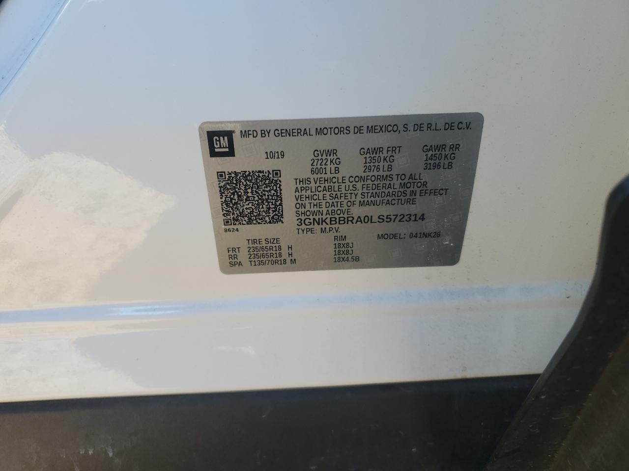 Колір БілийЦиліндри 4VIN 3GNKBBRA0LS572314Стан Заводиться та їде (перевірено)Ушкодження Передня або задня AutoRIA
