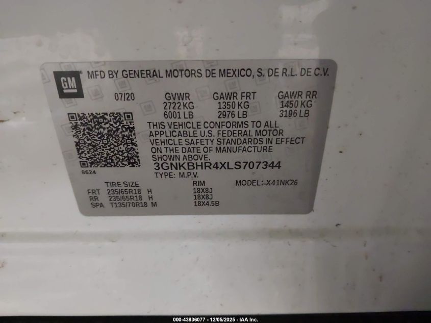 2020 CHEVROLET BLAZER 2020 року Бензин, 2.0, Повний привід, vin - 3GNKBHR4XLS707344 з США