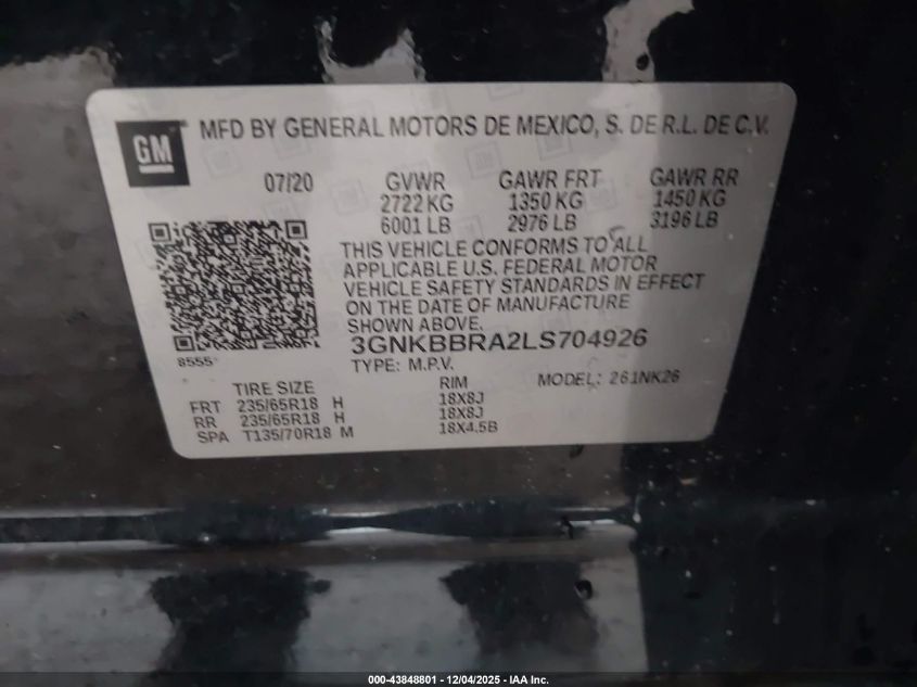 2020 CHEVROLET BLAZER 2020 року Бензин, 2.5, Передній привід, vin - 3GNKBBRA2LS704926 з США
