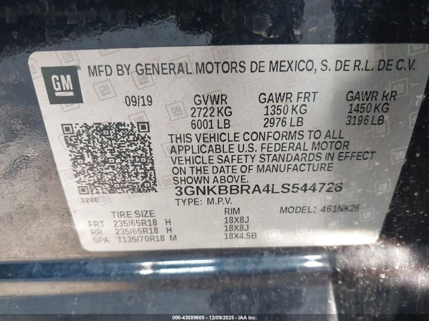 2020 CHEVROLET BLAZER 2020 року Бензин, 2.5, Передній привід, vin - 3GNKBBRA4LS544726 з США