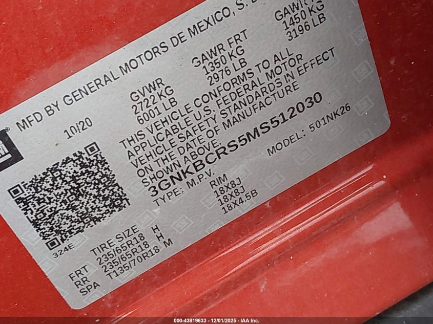 Колір АпельсиновийЦиліндри 6Привід Передній привідVIN 3GNKBCRS5MS512030Стан Заводиться та їде (перевірено)Ушкодження Права сторона AutoRIA