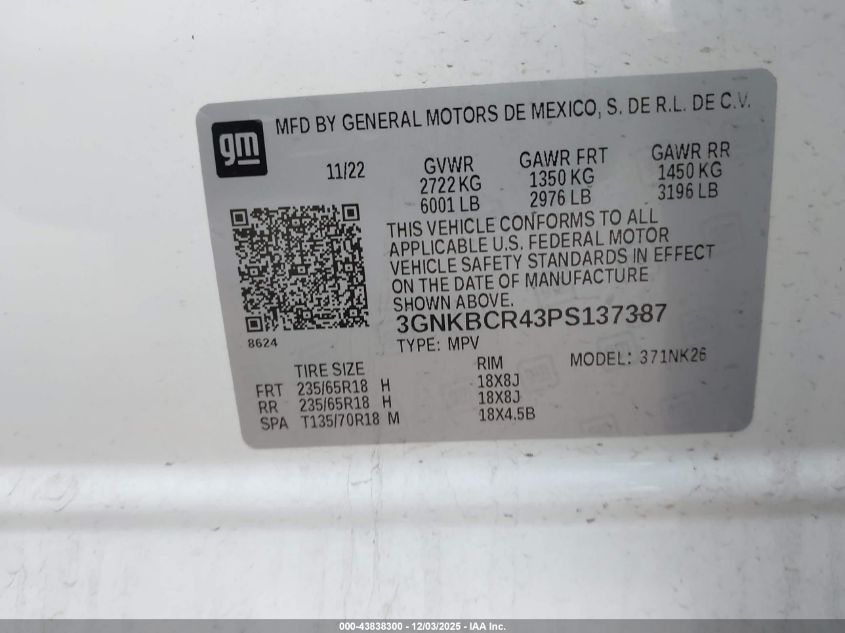 Колір БілийЦиліндри 4Привід Передній привідVIN 3GNKBCR43PS137387Стан СтаціонарноУшкодження Передня або задня AutoRIA
