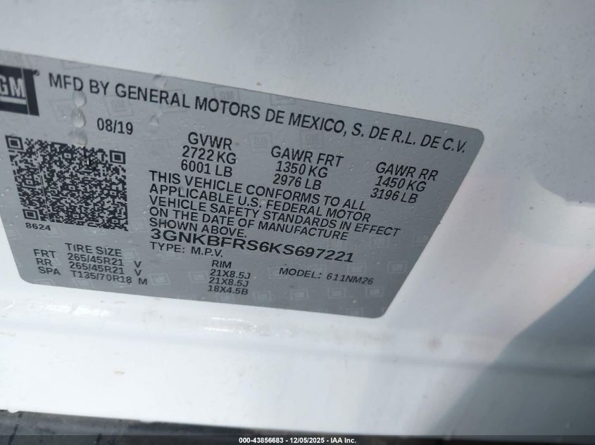 Колір БілийЦиліндри 6Привід Передній привідVIN 3GNKBFRS6KS697221Стан Заводиться та їде (перевірено)Ушкодження Передня або задня AutoRIA
