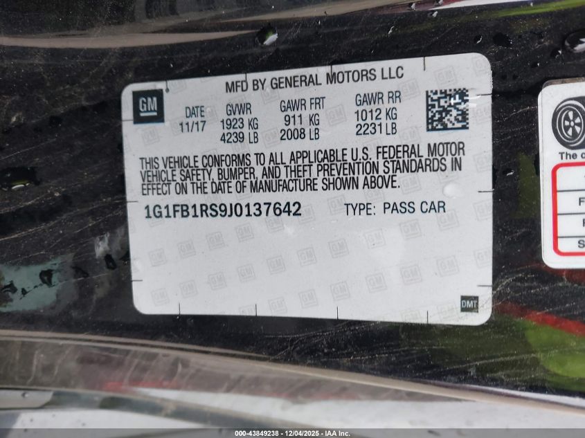 2018 CHEVROLET CAMARO 2018 року Бензин, 3.6, Задній привід, vin - 1G1FB1RS9J0137642 з США