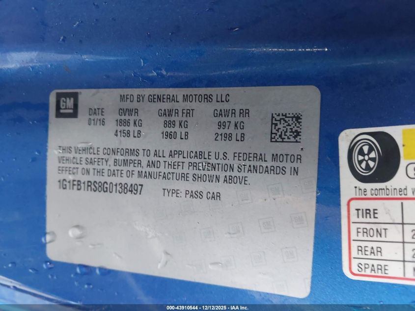 2016 CHEVROLET CAMARO 2016 року Бензин, 3.6, Задній привід, vin - 1G1FB1RS8G0138497 з США