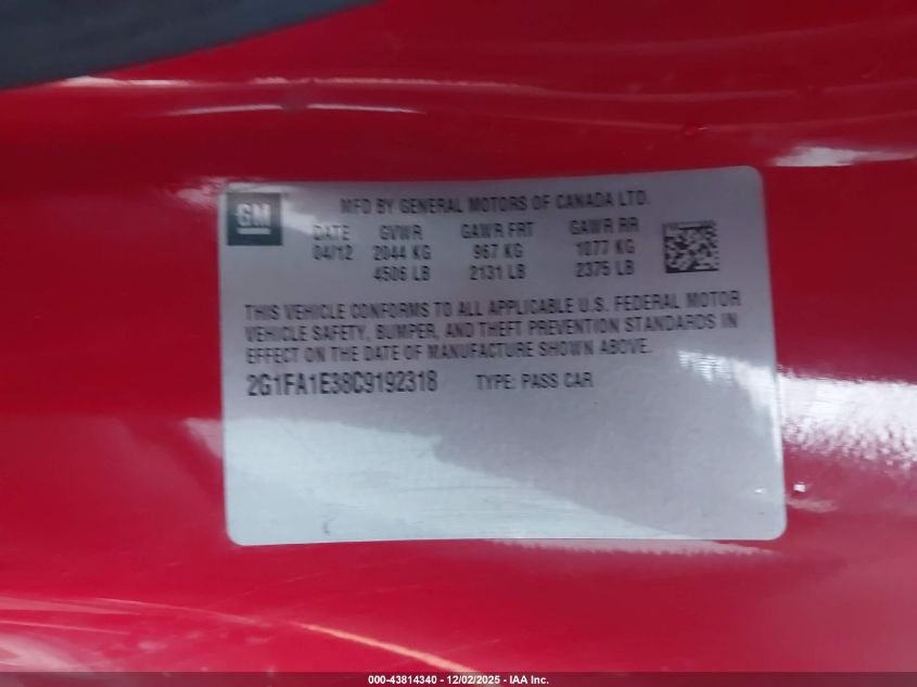 Колір ЧервонийЦиліндри 6Привід Задній привідVIN 2G1FA1E38C9192318Стан СтаціонарноУшкодження Передня або задня AutoRIA