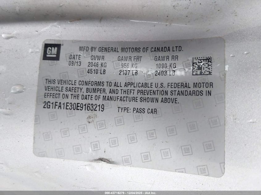 2014 CHEVROLET CAMARO 2014 року Бензин, 3.6, Задній привід, vin - 2G1FA1E30E9163219 з США