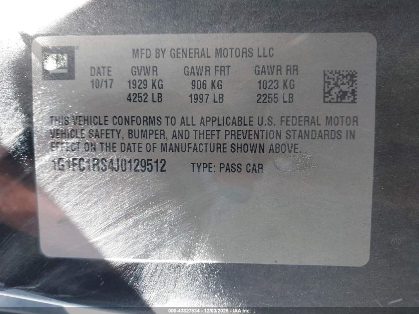 2018 CHEVROLET CAMARO 2018 року Бензин, 3.6, Задній привід, vin - 1G1FC1RS4J0129512 з США