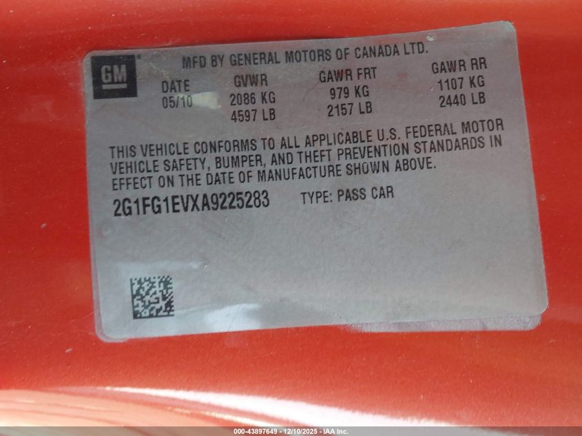 2010 CHEVROLET CAMARO 2010 року Бензин, 3.6, Задній привід, vin - 2G1FG1EVXA9225283 з США
