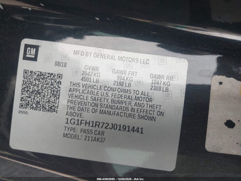 2018 CHEVROLET CAMARO 2018 року Бензин, 6.2, Задній привід, vin - 1G1FH1R72J0191441 з США