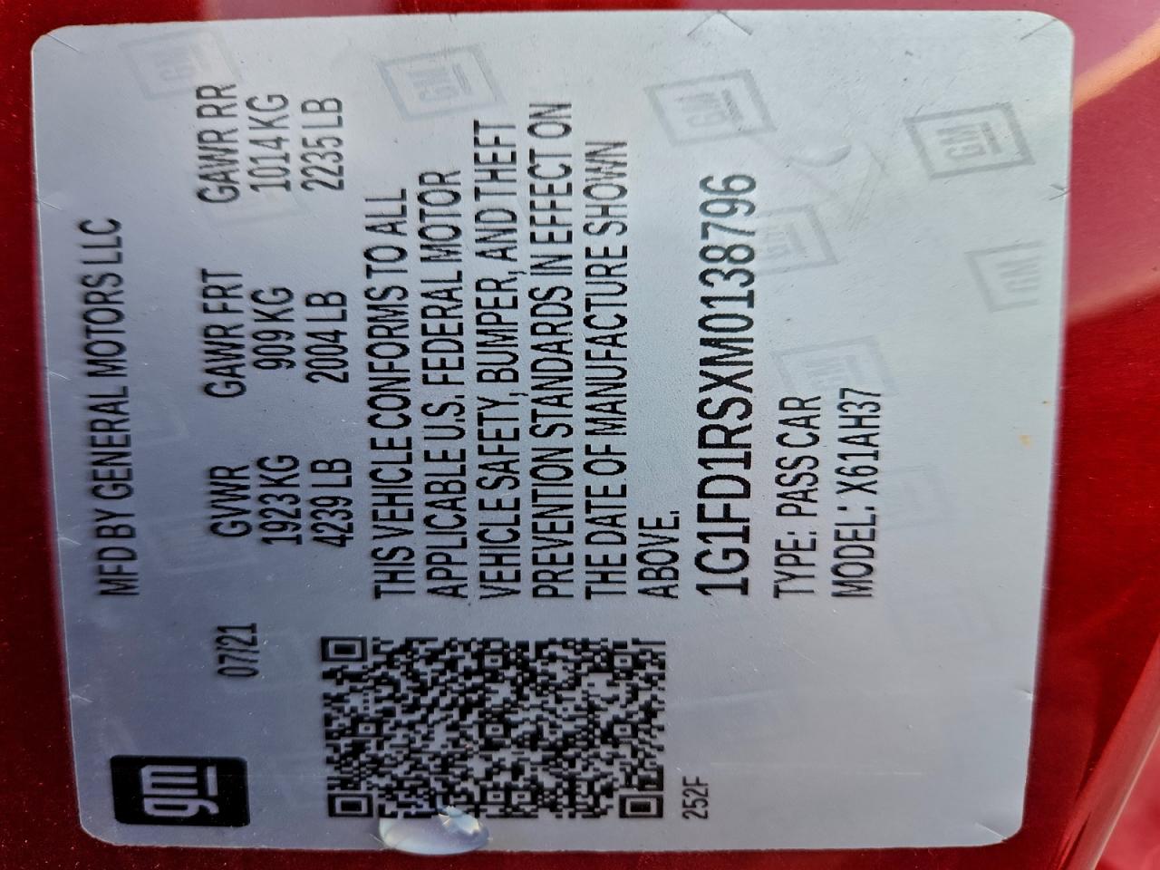 2021 CHEVROLET CAMARO 2021 року Бензин, 3.6, Задній привід, vin - 1G1FD1RSXM0138796 з США