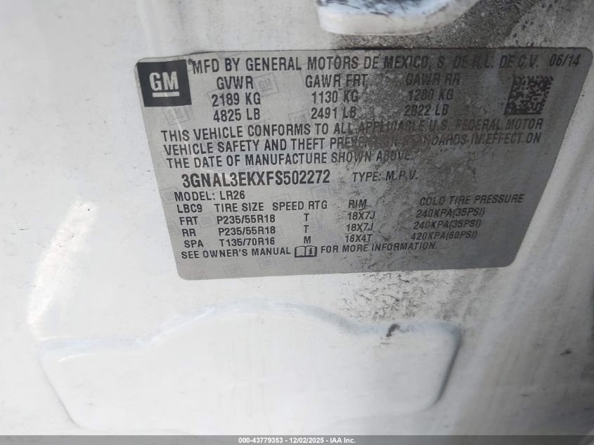 2015 CHEVROLET CAPTIVA 2015 року Бензин, 2.4, Передній привід, vin - 3GNAL3EKXFS502272 з США