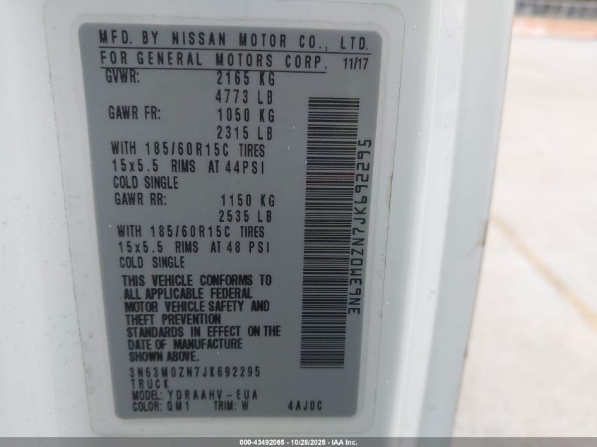 2018 CHEVROLET CITY EXPRESS 2018 року Бензин, 2.0, Передній привід, vin - 3N63M0ZN7JK692295 з США