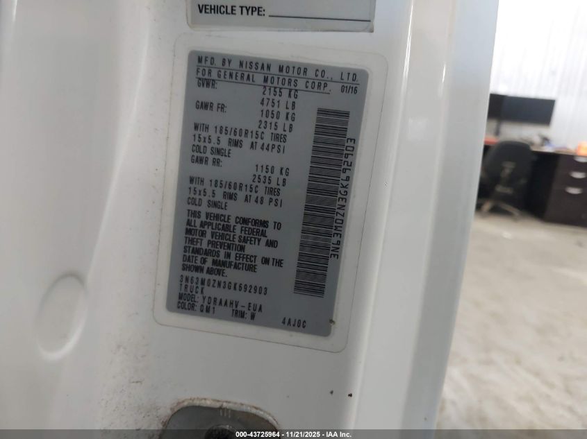 2016 CHEVROLET CITY EXPRESS 2016 року Бензин, 2.0, Передній привід, vin - 3N63M0ZN3GK692903 з США
