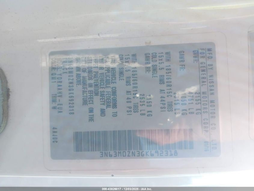 Колір БілийЦиліндри 4Привід Передній привідVIN 3N63M0ZN3GK692318Стан Заводиться та їде (перевірено)Ушкодження Передня або задня AutoRIA