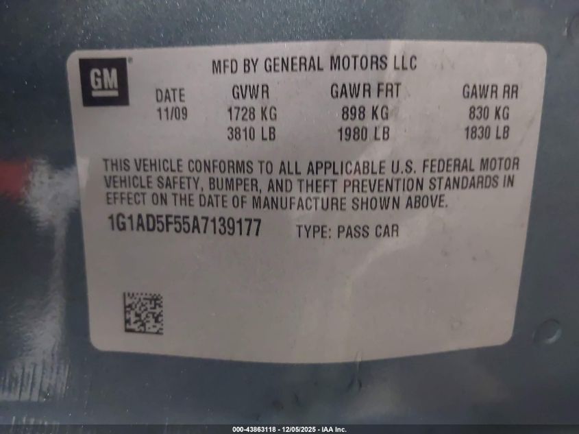 2010 CHEVROLET COBALT 2010 року Бензин, 2.2, Передній привід, vin - 1G1AD5F55A7139177 з США