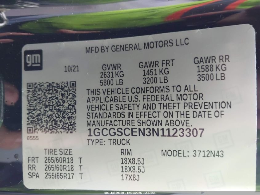2022 CHEVROLET COLORADO 2022 року Бензин, 3.6, , vin - 1GCGSCEN3N1123307 з США