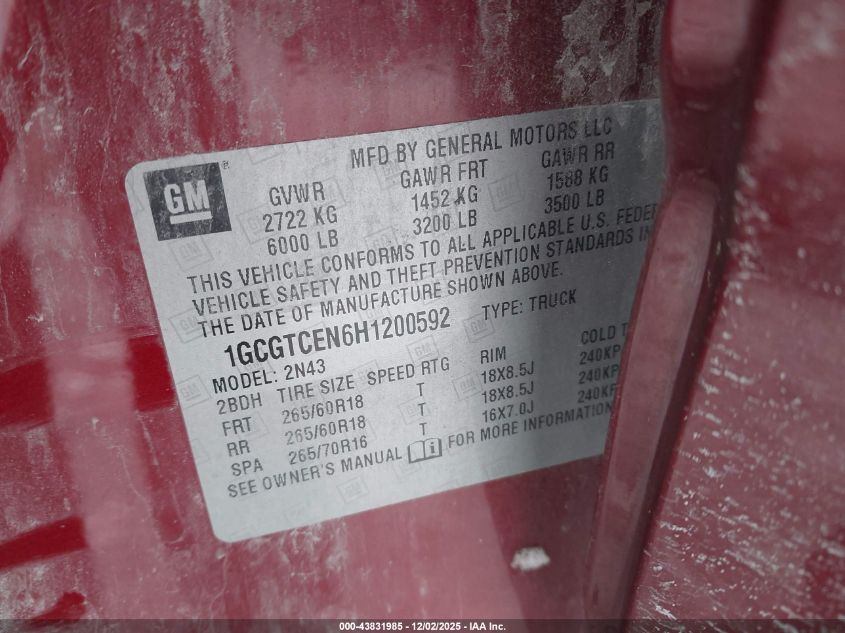 2017 CHEVROLET COLORADO 2017 року Бензин, 3.6, Повний привід, vin - 1GCGTCEN6H1200592 з США