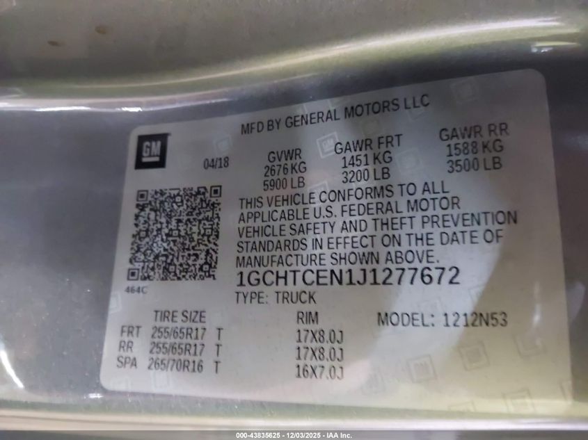 2018 CHEVROLET COLORADO 2018 року Бензин, 3.6, Повний привід, vin - 1GCHTCEN1J1277672 з США