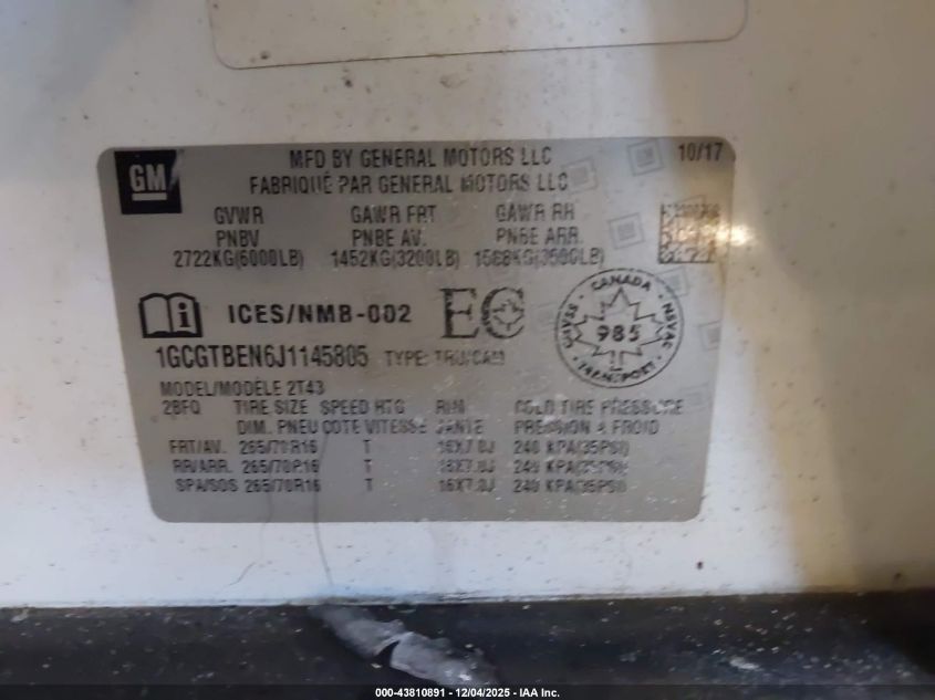 2018 CHEVROLET COLORADO 2018 року Бензин, 3.6, Повний привід, vin - 1GCGTBEN6J1145805 з США