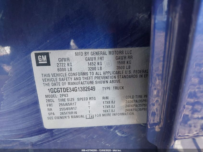 2016 CHEVROLET COLORADO 2016 року Бензин, 3.6, Повний привід, vin - 1GCGTDE34G1382649 з США