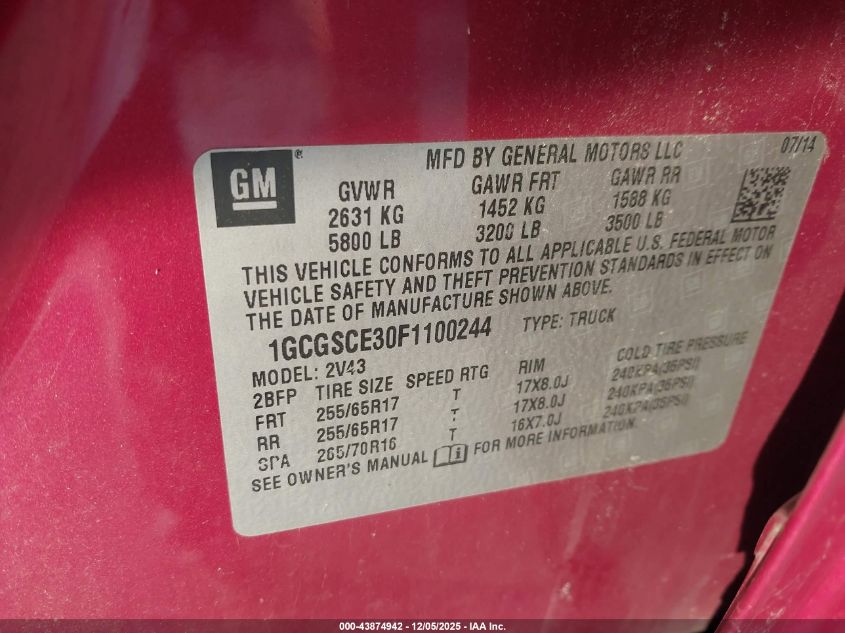 2015 CHEVROLET COLORADO 2015 року Бензин, 3.6, , vin - 1GCGSCE30F1100244 з США