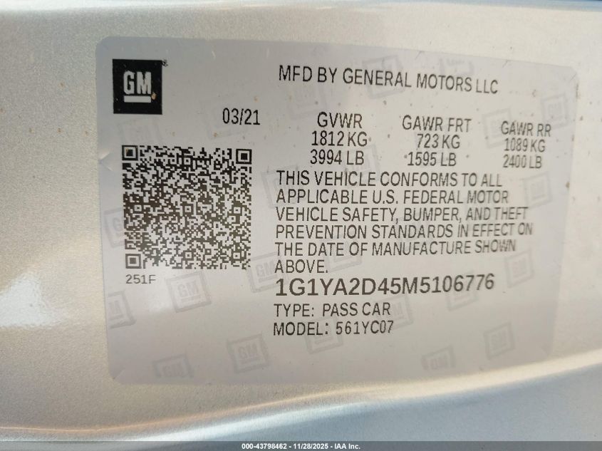 2021 CHEVROLET CORVETTE 2021 року Бензин, 6.2, Задній привід, vin - 1G1YA2D45M5106776 з США