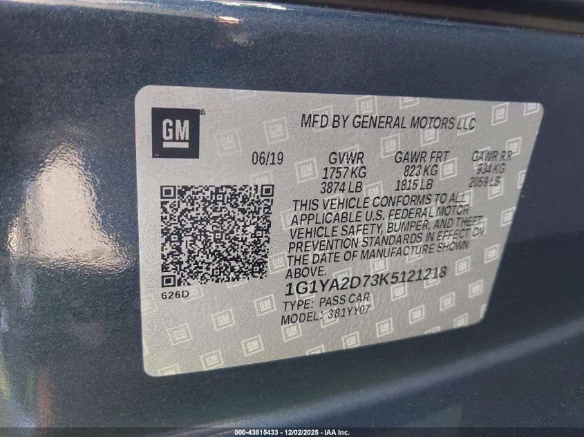 2019 CHEVROLET CORVETTE STINGRAY 1LT